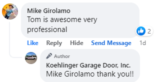 When Phil Koehlinger and the team take your calls, no matter what the issue is, we are ready to treat you the way you expect. Not only is this what we strive for, it’s what our customers say time after time. If you are looking for a new garage door, repair, commercial doors included, we’ll be there for you. Call anytime at 815-355-8758!